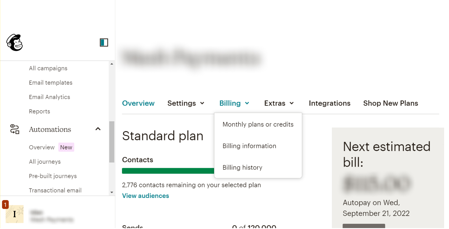 Click the “Billing” drop-down menu and select “Billing history.”
